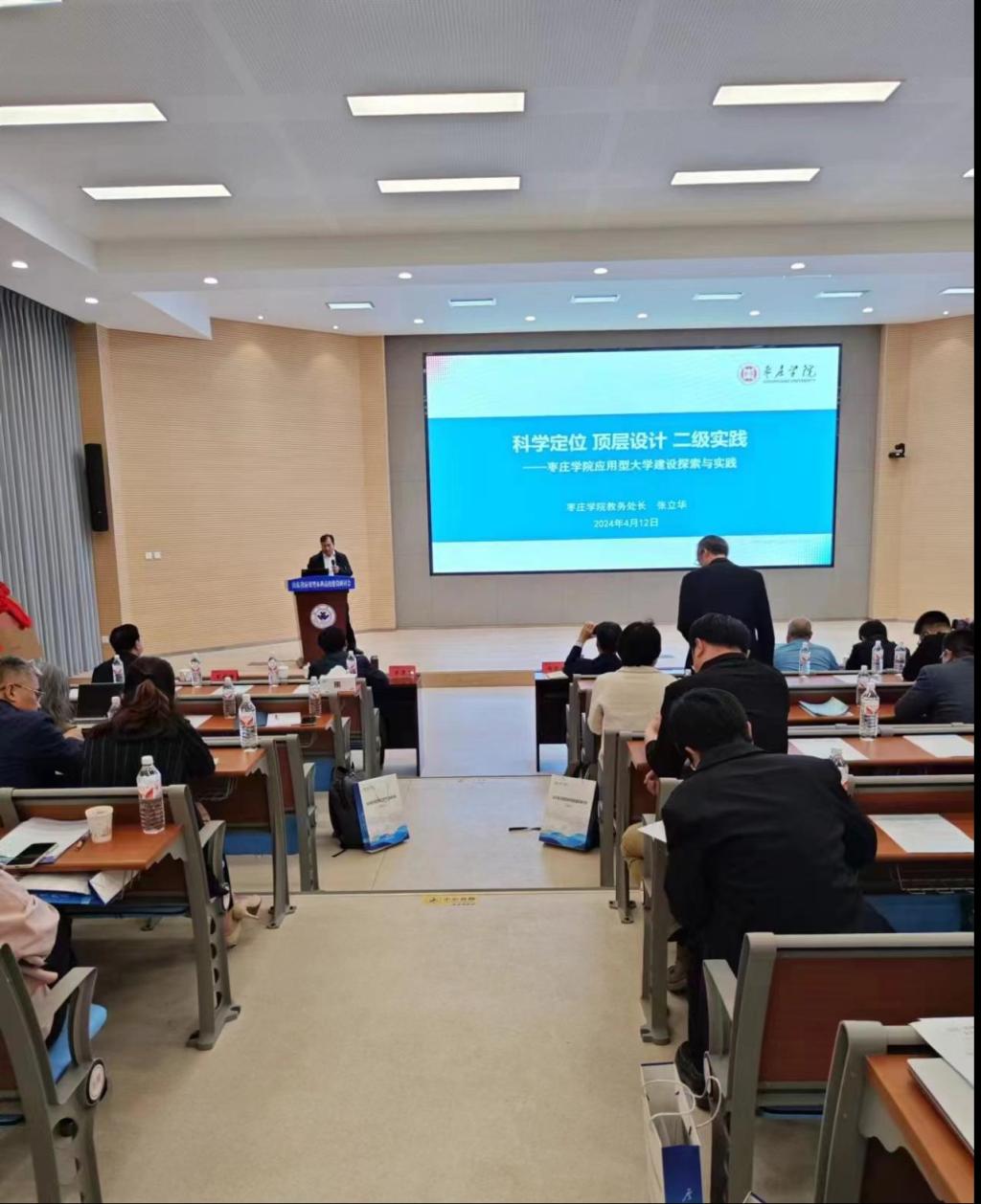 4月12日,2024年山东省应用型本科高校建设研讨会在潍坊学院召开,全省49所应用型本科高校建设单位的分管教育教学负责同志和代表参加了研讨会。必赢官网教务处处长张立华代表学校在研讨会上以《科学定位、顶层设计、二级实践——枣庄学院应用型大学建设探索与实践》为题,就应用型大学建设作经验交流发言。会上,张立华处长着重以必赢官网“一体三翼一特色”应用型二级学院模式为例,展现必赢官网应用型人才培养改革创新的成果。发言受到了与会领导和代表的充分肯定。