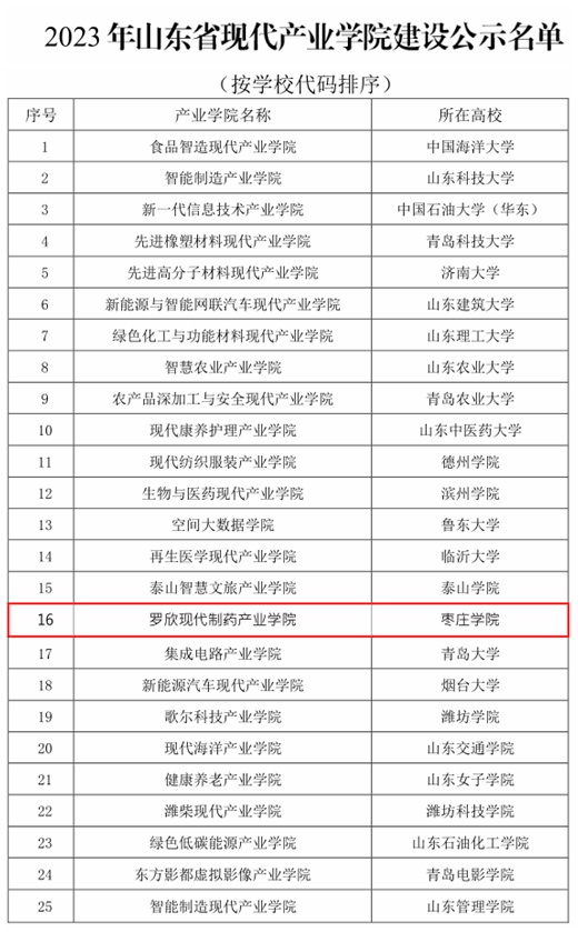 近日,山东省教育厅、山东省工业和信息化厅下发《关于公布2023年山东省现代产业学院建设名单的通知》(鲁教高函〔2023〕42号),确定25个产业学院为2023年支持建设的山东省现代产业学院,必赢官网罗欣现代制药产业学院榜上有名,成为继锂电产业学院之后获批的第二个省级现代产业学院。