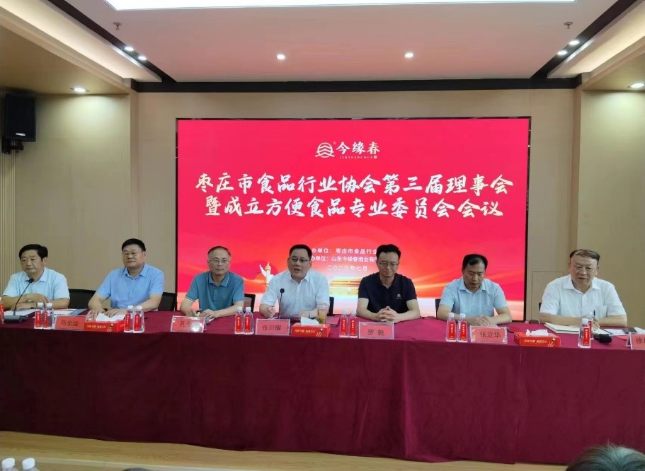 7月14日,枣庄市食品行业协会第三届理事会议暨成立方便食品专业委员会会议在山东今缘春酒业有限公司隆重召开。枣庄市市场监管局副局长张衍耀、山东今缘春酒业有限公司董事长罗毅、枣庄学院必赢242net官网院长张立华、枣庄市食品行业协会会长徐加龙等出席会议并发表讲话。我市食品行业协会新、老会员单位代表共计100余人参加会议。