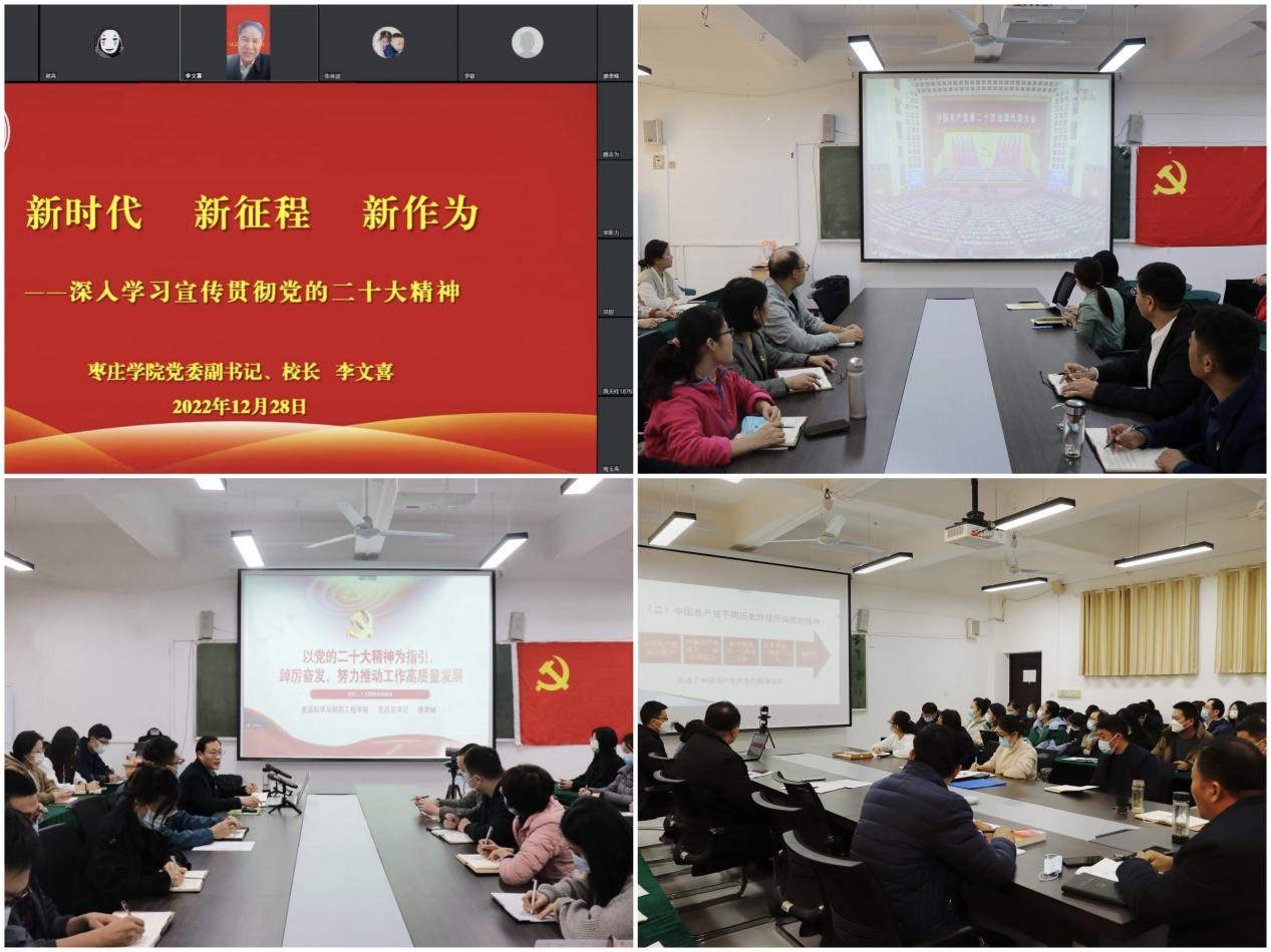 10月16日至22日,学院积极组织广大师生通过多种方式收听收看开幕会、闭幕会直播,学习热议党的二十大精神。随后,根据学校党委统一部署,结合学院工作实际,出台《必赢242net官网学习宣传贯彻党的二十大精神工作实施方案》,制定宣讲计划,开展学习培训,分层分类,有效推动党的二十大精神入脑入心。12月28日,校党委副书记、校长李文喜为学院全体教师党员作了题为《新时代 新征程 新作为——深入学习宣传贯彻党的二十大精神》的宣讲报告,学院领导班子开展系列宣讲活动4次,受众师生1000余人次,着力推进舆论宣传和理论研究阐释,切实把学习成果转化为推动学院各项事业高质量发展的实际成效。