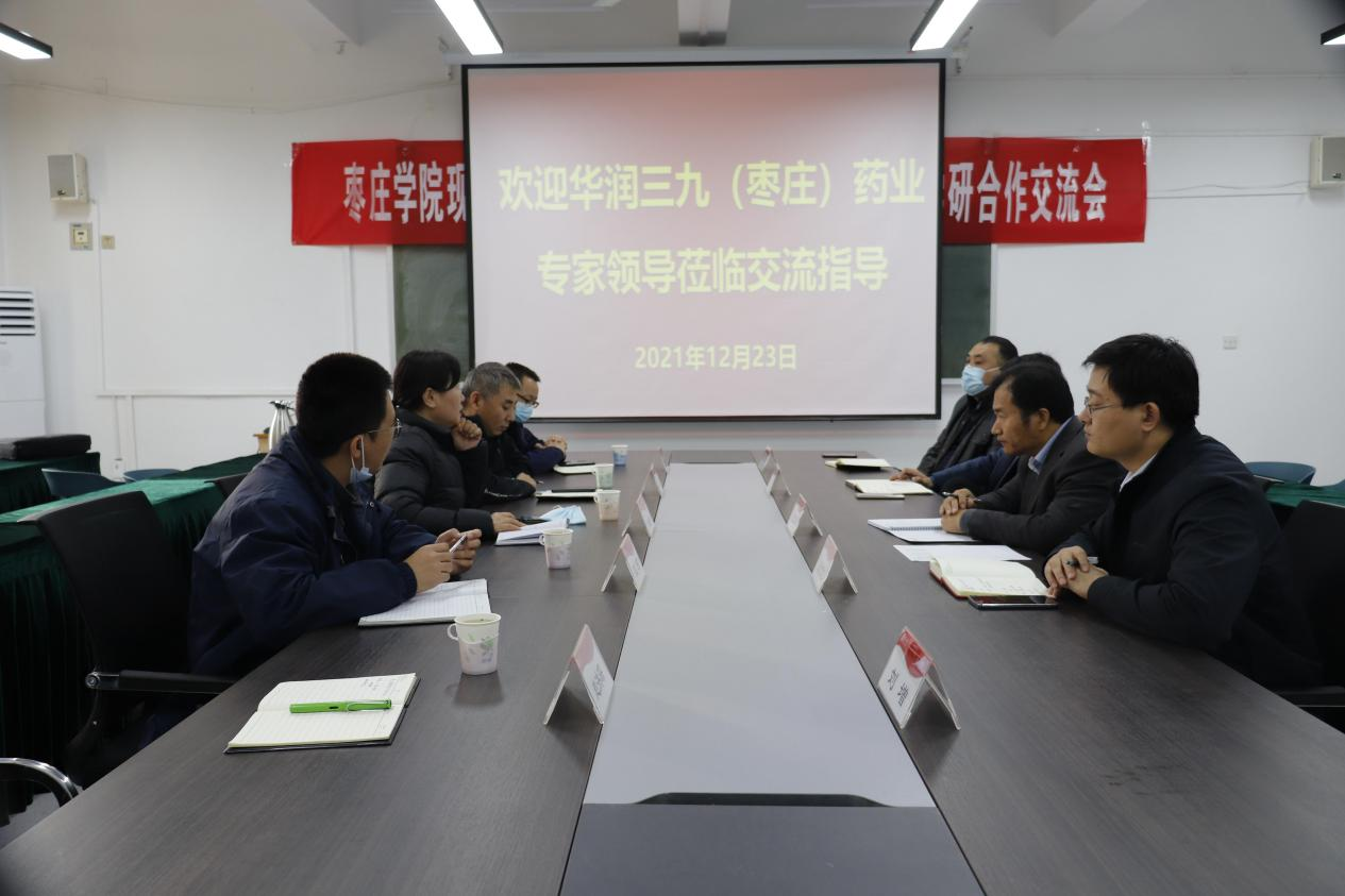 2021年12月23日下午,华润三九(枣庄)药业有限公司副总经理朱晓倩、涂祥军、人力资源总监孔珂、技术总监陈晓阳、设备处赵洪琛工程师一行5人来必赢官网洽谈交流。会议在文科楼213进行,必赢242net官网张立华院长主持,王京龙副院长及部分教师代表参加座谈,机电工程学院闵红主任也参加了座谈交流。