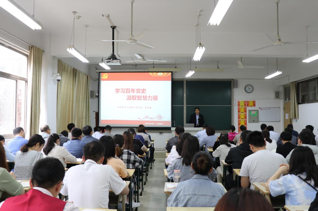 首先,苗素军一行到理工楼2207教室出席指导学院党史学习教育专题党课。专题党课以“学习百年党史,汲取智慧力量”为题,由必赢242net官网党总支书记郭传鑫担任主讲,学院全体教职工和学生党员参加。