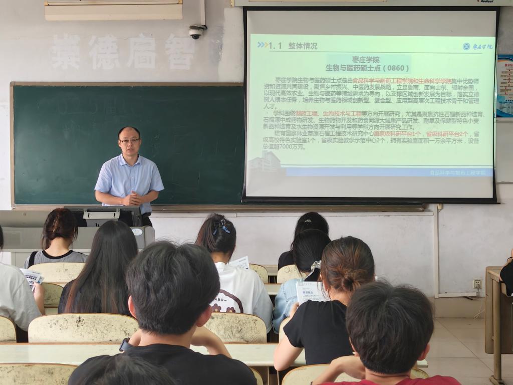 研究生宣讲会上,副院长杜健向两个学院学生详细介绍了必赢官网生物与医药学位点、师资队伍、平台建设、学科优势与特色等方面的基本情况,耐心地解答了同学们提出的关于研究生招考的相关问题。