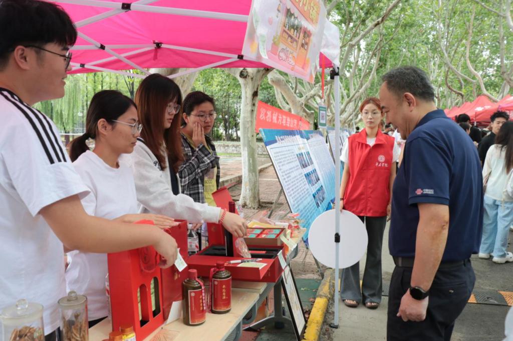 值得一提的是,今年学院“本草社”学生兴趣社团在迎新摊位点设置了独具特色的“食药小铺”,成为了迎新现场的一大亮点,吸引了大量新生和家长驻足。“小铺”内展示了由学生手工制作的香囊、学院自制的月饼、红酒等产品,还特别展出了由学院研发的中药感冒药等科研成果。这些产品让新生们对所学专业有了初步认识,激发了他们的学习兴趣。