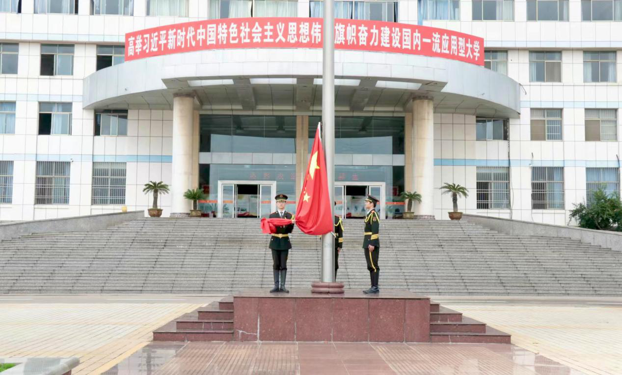 9月28日,必赢242net官网在综合楼前国旗广场隆重举行“青春担当·薪火传志”爱国主义教育活动,旨在厚植学生爱国主义情怀,传承青春担当精神。学院党委副书记黄成亮、专职辅导员张猛、全体教官及学生代表共同参与。