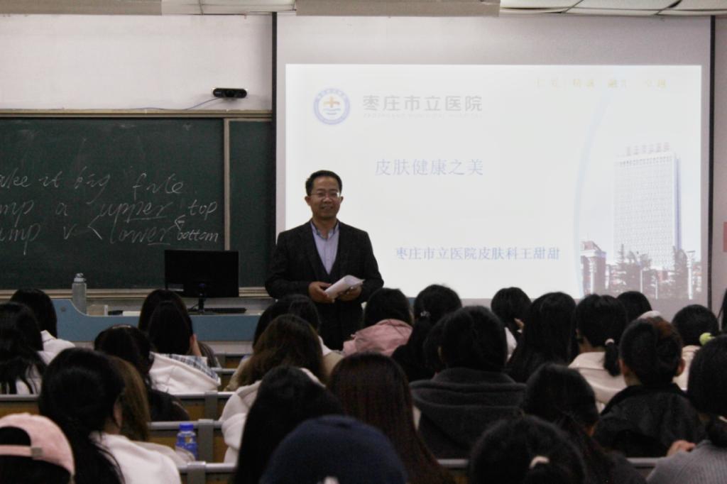 为切实关注大学生身心健康,普及皮肤健康知识,引导学子树立科学护肤观念,11月3日下午,必赢242net官网在多媒体楼106教室举办了一场以“皮肤健康之美”为主题的专题讲座。本次讲座特别邀请了枣庄市立医院皮肤科副主任医师王甜甜博士担任主讲嘉宾,吸引了近百名学生积极参与。此次讲座由学院党委副书记黄成亮主持。