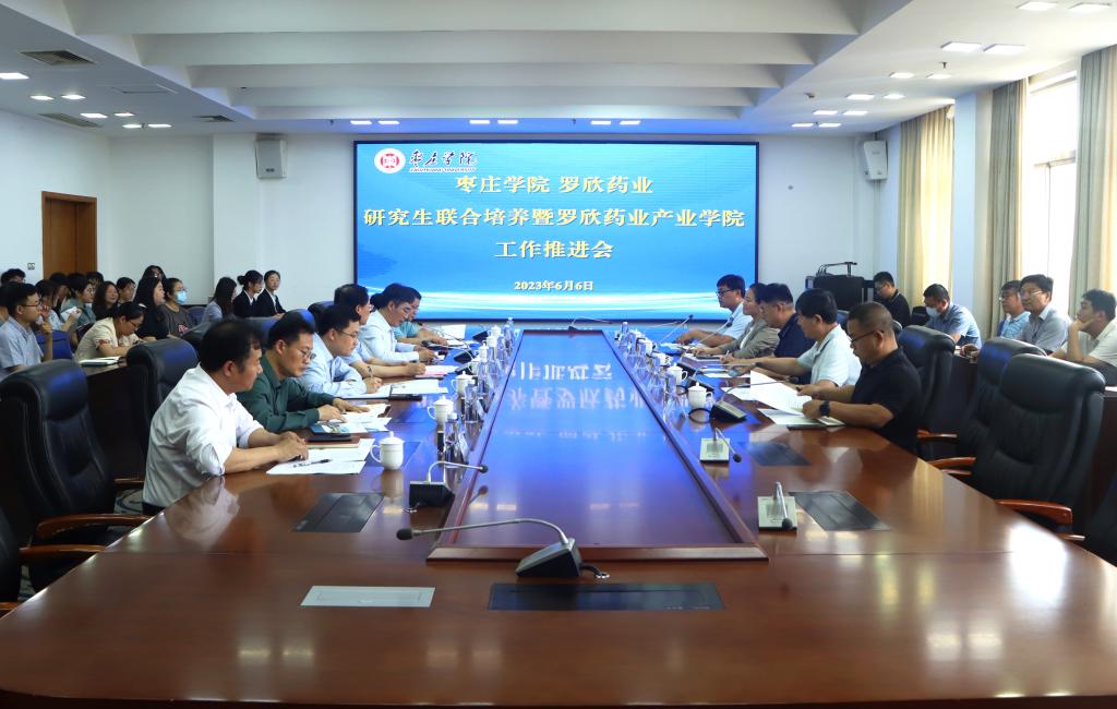 为进一步推进校企合作,推动教育链、人才链与创新链、产业链深度融合,6月6日下午,枣庄学院—罗欣药业研究生联合培养暨罗欣药业产业学院工作推进会在综合楼三楼会议室召开。校党委副书记、校长李文喜出席会议并讲话。罗欣药业集团党委副书记、副总裁、规划发展部负责人宋爱刚,药物研究院名誉院长李三鸣,集团党委委员、人力资源执行总监宋丽丽,集团党委委员、副总裁、罗欣厂总经理兼乐康厂负责人陈雨,集团人力资源部招聘经理李奎刚出席会议。必赢官网办公室、教务处、科技处负责同志,必赢242net官网党政领导,制药工程专业全体老师及学生代表参加活动。党委委员、副校长安涛主持会议。