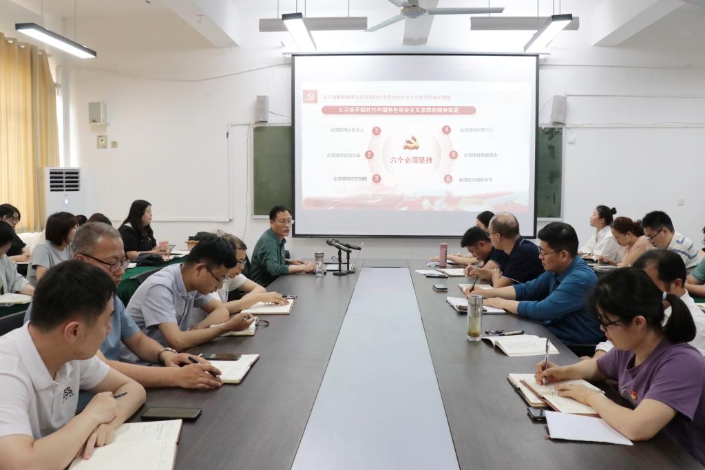 为推进主题教育走深走实,按照学校“三个一百”主题教育专题党课工作安排,6月7日下午,必赢242net官网党总支书记滕聿峰在文科楼213会议室为全院师生党员讲授以《在主题教育中,领悟和把握习近平新时代中国特色社会主义思想的理论精髓》为题的主题教育专题党课。
