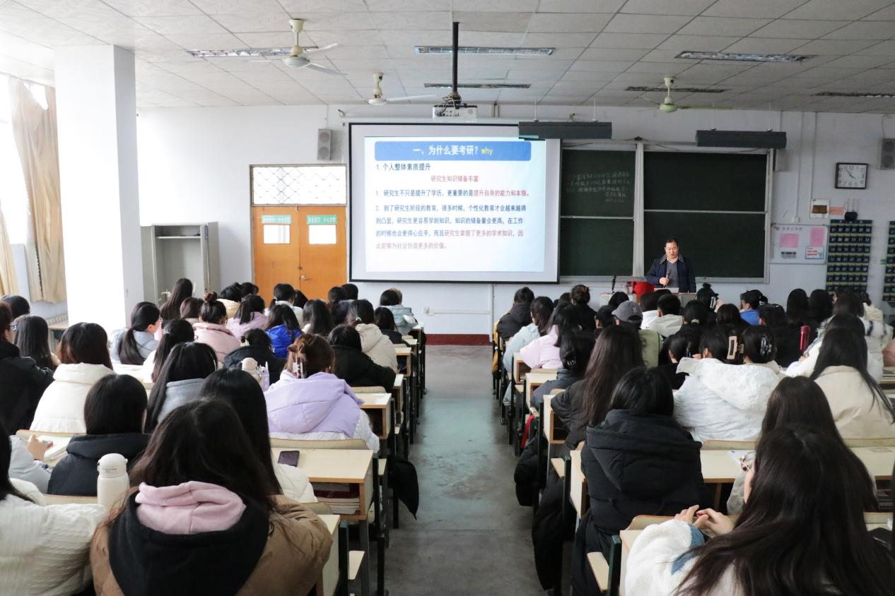 会上,张立华围绕“为什么考研”“如何选择类型、专业和学校”“如何备战考研”三个方面,结合学院近年来的考研数据进行详细讲解,分析了考研的必要性和重要性。张立华强调,要趁早确定考研目标、制定考研计划、把握学习节奏,科学备考、踏实勤学、一战成“硕”。随后,周玉亮就如何备考提出以下几点建议:一是养成良好的习惯,抵制诱惑;二是注意劳逸结合,及时调整心理状态;三是培养行动力,坚持不懈。最后,学生们表示,要正确定位自我,笃行不怠,为考上理想的院校而不懈努力。