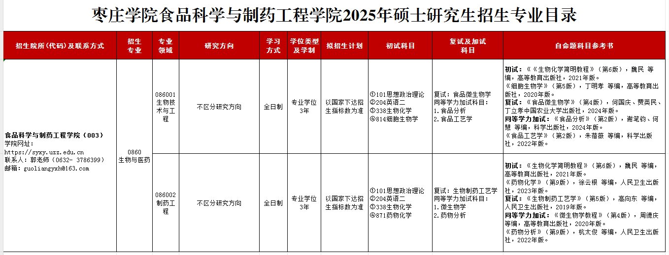 枣庄学院必赢242net官网2025年硕士研究生招生专业目录