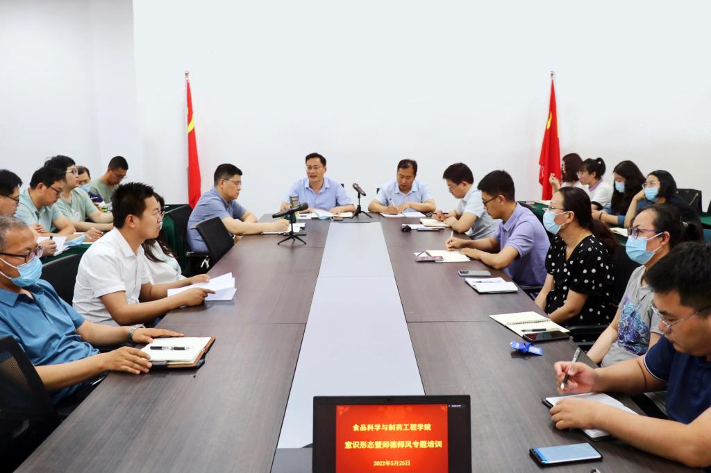 会上,学院党总支书记滕聿峰传达并领学了学校意识形态工作会议及安全工作推进会议精神,集体学习了《习近平总书记关于师德师风的重要论述》《新时代师德建设的根本遵循》等文件内容,围绕“为师者要明道信道”“为师者要立德垂范”“为师者要业精善学”“为师者要敬业爱生”四个维度展开培训。