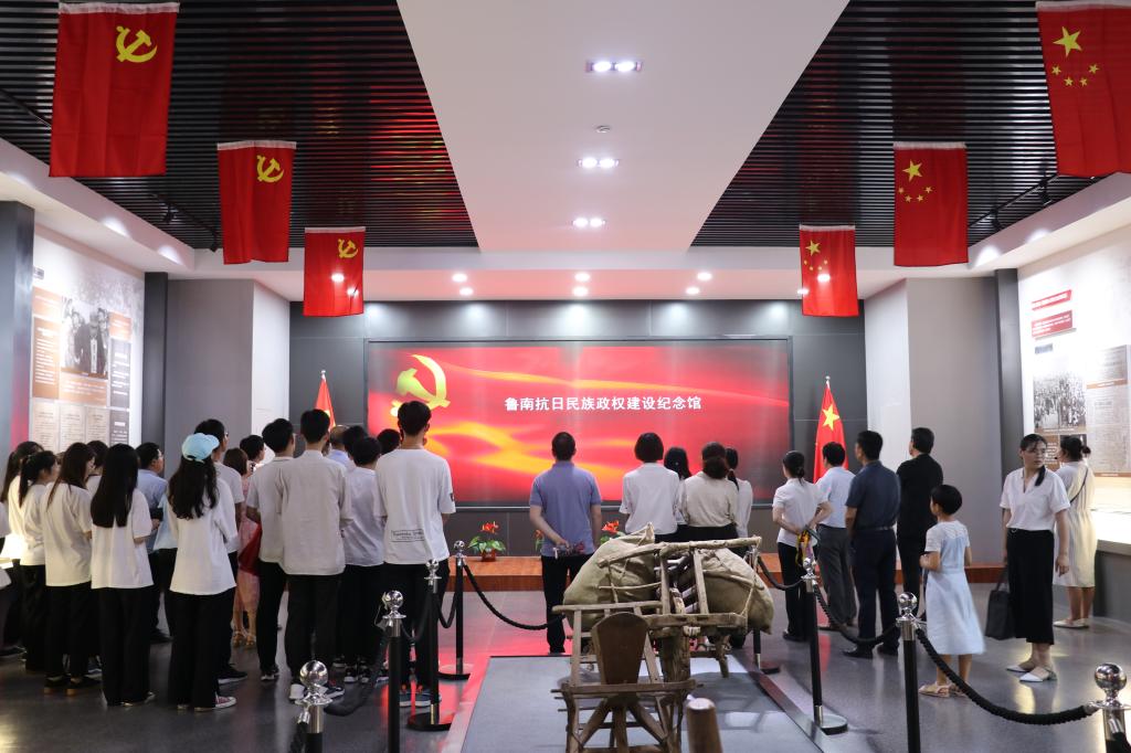 为扎实推进党史学习教育,传承弘扬革命精神,加强对青年学子特别是学生党员、学生干部的红色教育,组织开展好“党性教育基地进高校、高校青年学子进基地”活动。6月30日下午,必赢242net官网组织全体教工党员和学生党员赴山亭区王家湾红色教育基地鲁南抗日民主政权建设纪念馆开展党史学习教育现场培训。