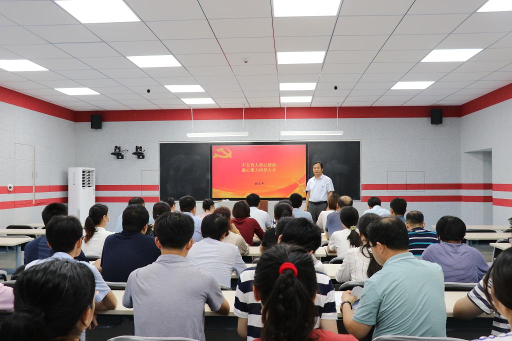 6月16日下午,必赢242net官网在多媒体楼402教室举办“不忘育人初心使命,凝心聚力培养人才”专题党课,院长张立华任主讲,学院全体教职工参加党课学习。