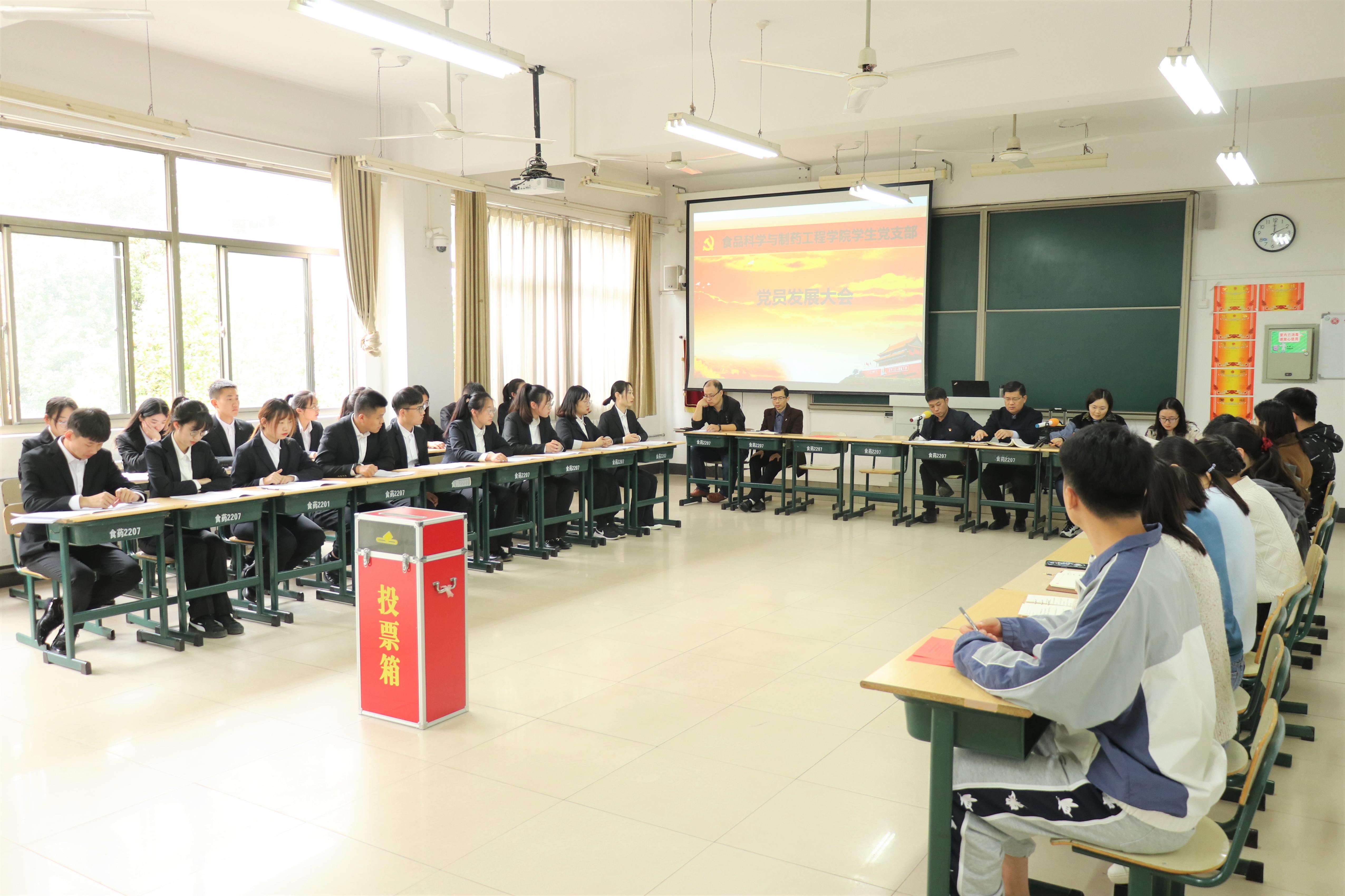 10月28日下午,必赢242net官网在理工楼2207教室召开组织发展大会。讨论接收张倩等17名同志为中共预备党员的问题。院党总支书记戴恩冰、院党总支副书记周玉亮,学生党支部全体党员以及发展对象入党介绍人参加了会议,会议由学生党支部书记孙星主持。