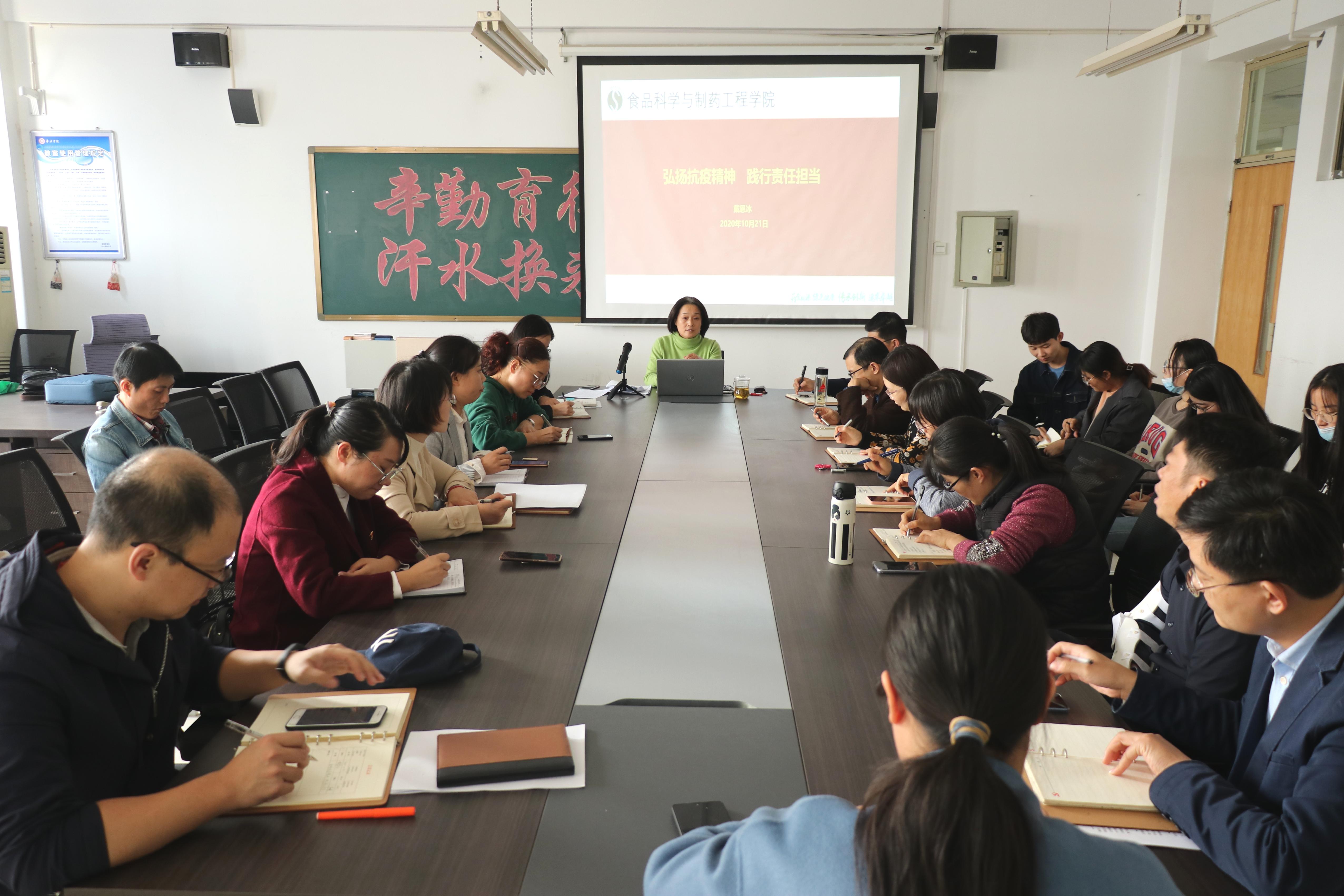 10月21日下午,必赢242net官网在理工楼2301教室举办“弘扬抗疫精神,践行责任担当”专题党课,院党总支书记戴恩冰担任主讲,学院全体教工和学生党员参加党课学习。