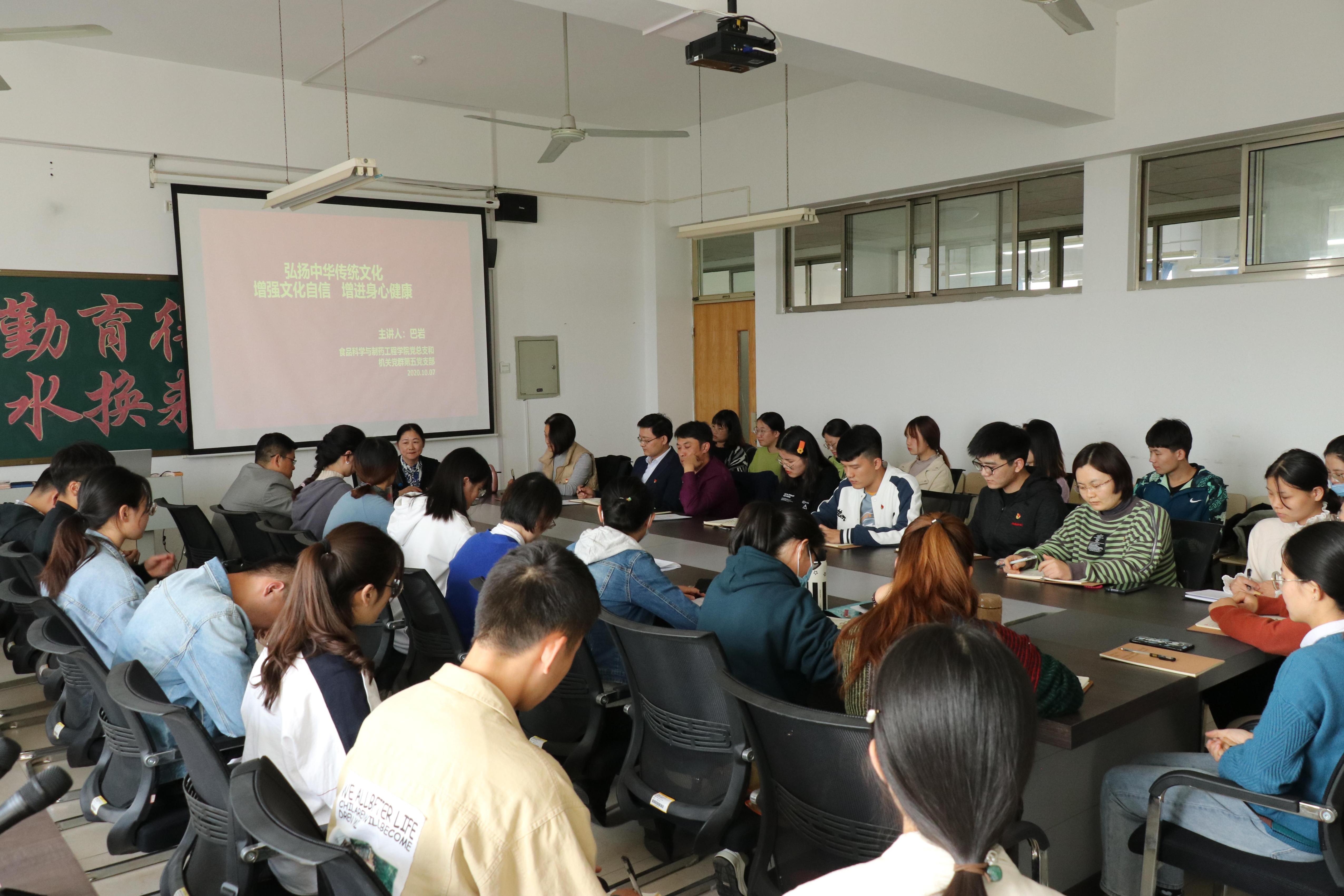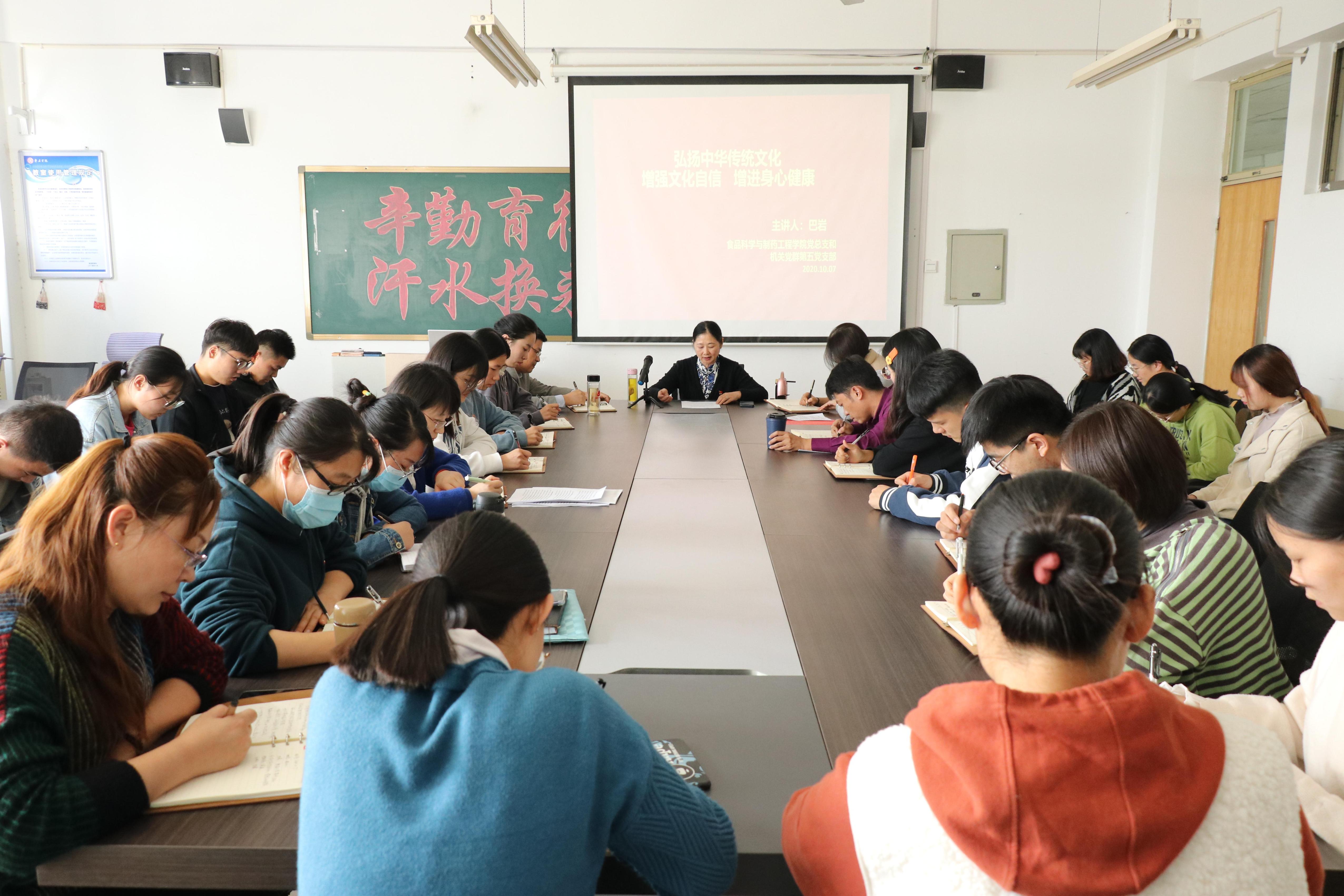 为弘扬中华优秀传统文化,助力文化自信,促进师生身心健康。10月7日下午,必赢242net官网特邀学校妇委会主任巴岩作了主题为“弘扬传统文化,增强文化自信,增进身心健康”的专题党课,学院全体教工和学生党员参加了党课学习。