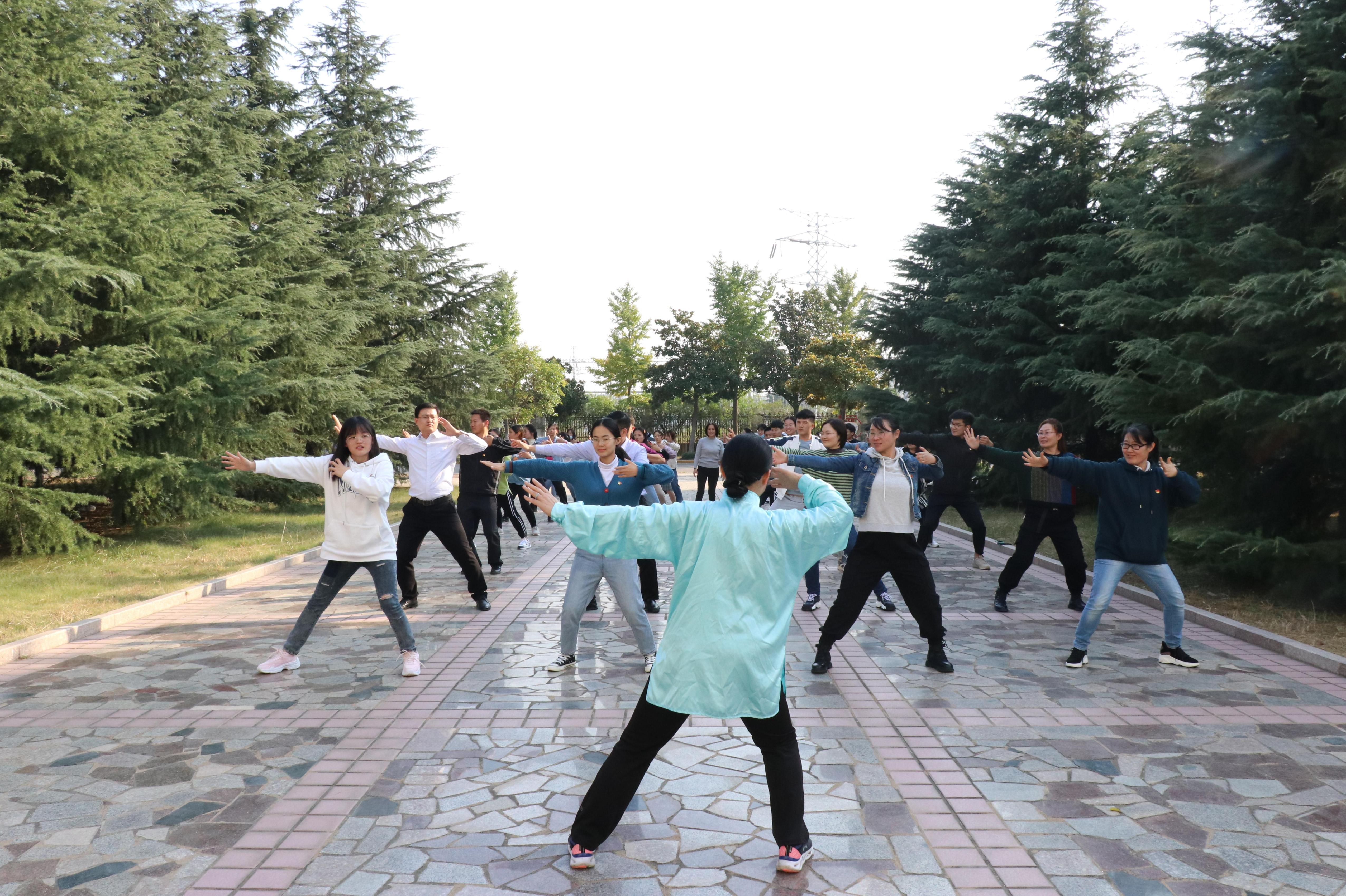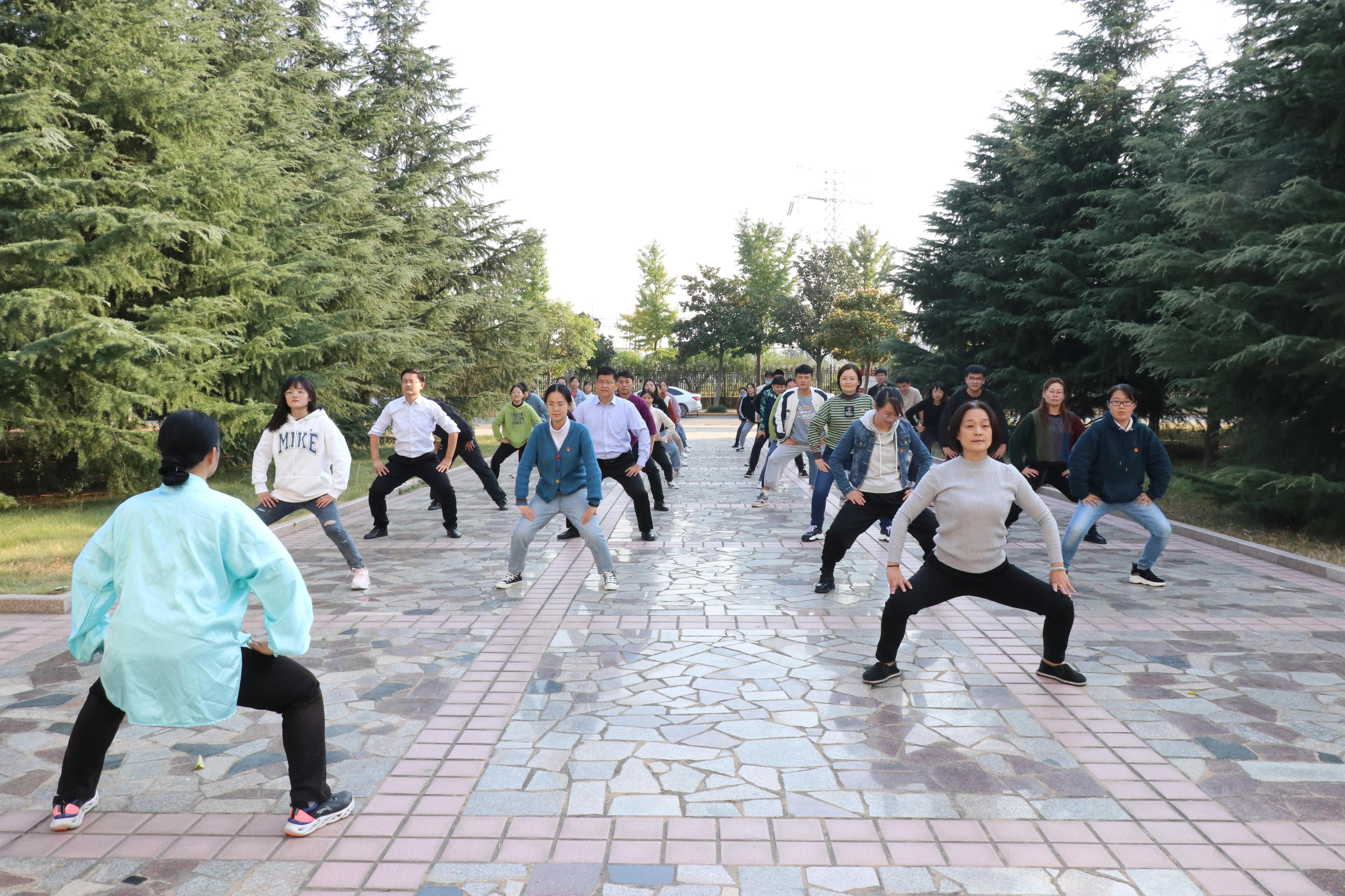 党课学习后,巴岩带领全体师生党员开展健身气功“八段锦”现场教学活动。教学现场,巴岩就八段锦的起源、特点、各节功效、动作要领等方面进行认真细致的讲解示范。通过现场学习演练,大家进一步认识到“八段锦”健身气功对个人养生、健康的重要意义,领略了中华优秀传统文化的魅力。