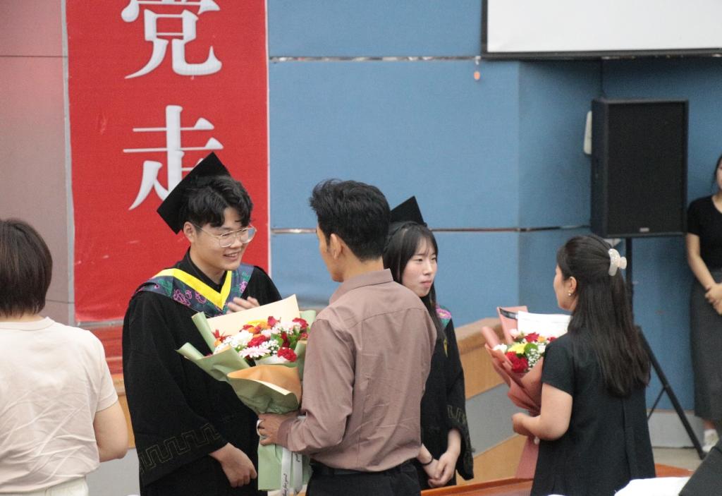 四年悠悠,学途漫漫。为感谢老师的辛勤培育,毕业生代表为教师代表敬献鲜花,与老师们倾心话别。