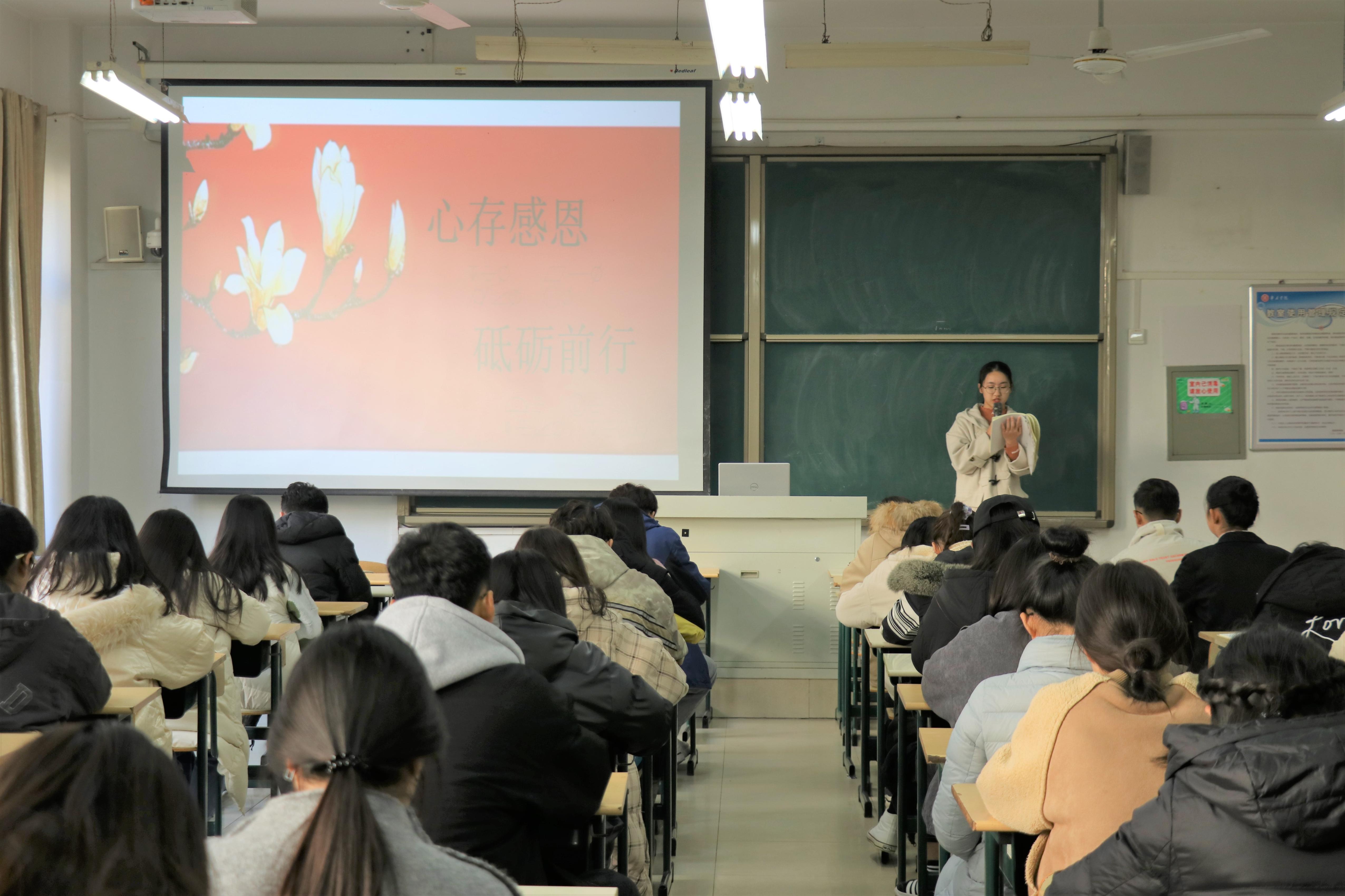 为发挥资助育人功能,帮助同学们牢固树立感恩意识,鼓励家庭经济困难同学直面困难、不懈奋斗,走好学业路、人生路,必赢242net官网于12月6日在理工楼2208教室举办了以“心存感恩,励志前行”为主题的演讲比赛,学院家庭经济困难学生观摩了比赛。