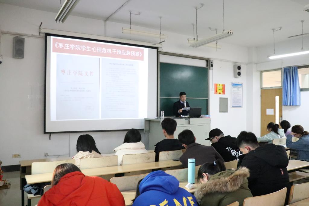 会上,周玉亮传达了学校心理健康教育工作会议精神,解读了《枣庄学院学生心理危机干预应急预案》,分析了心理健康的标准和大学生常见心理问题并告知学生如何提升心理素质以及预防常见的心理问题。他强调,大家要充分认识心理健康工作的重要性,加快畅通“学院-班级-宿舍”三级心理健康教育工作网络,打通学生互助关键节点,有效预防心理危机事件发生。