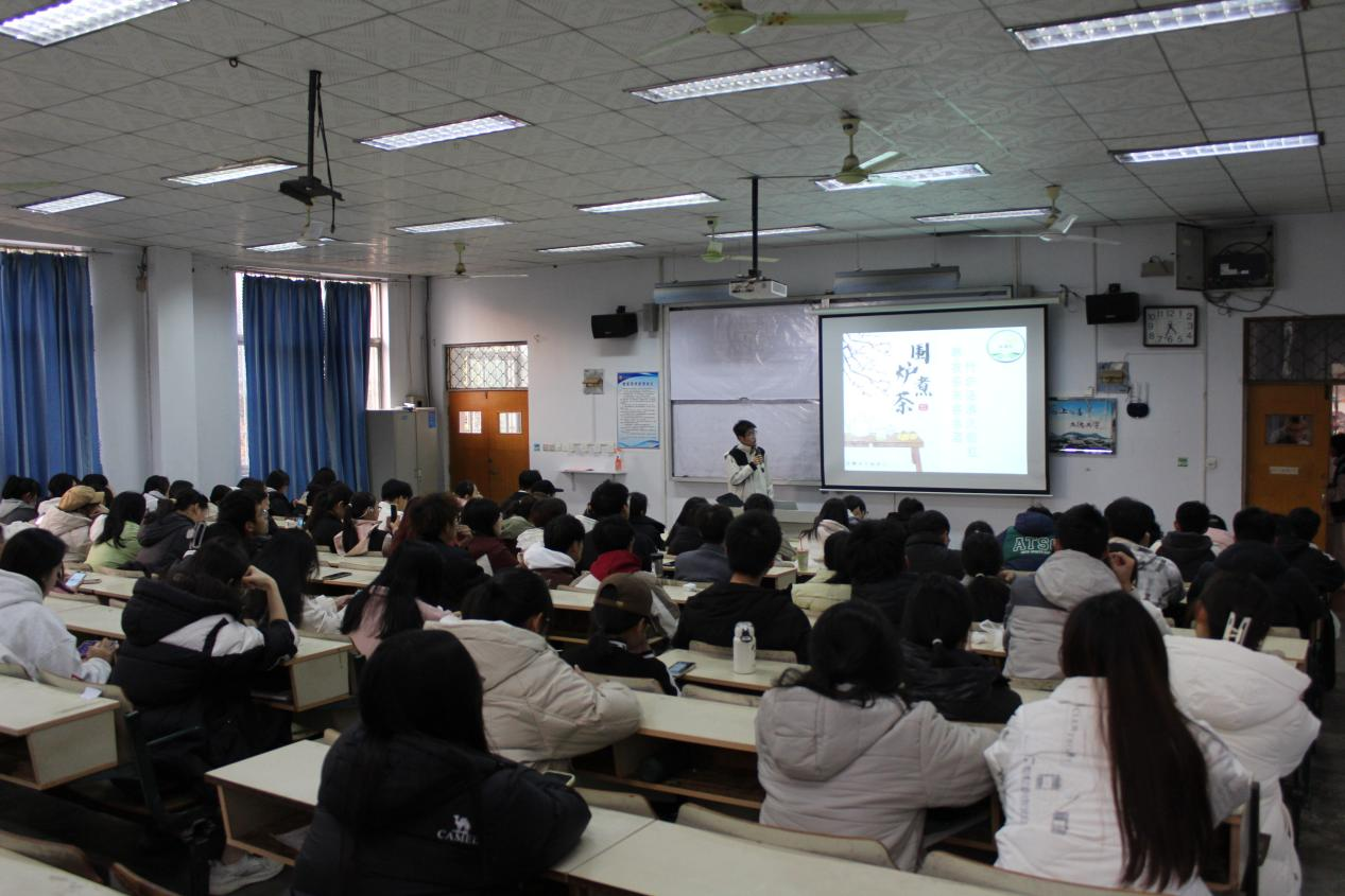 活动中,主持人通过图片和视频的形式耐心细致地讲解了茶文化,同学们认识到茶文化是中华文化教育的重要组成部分,对社会文明进步与经济发展起着重要作用。同时,主持人介绍了煮茶、品茶、做糖和做茶点的过程,鼓励同学们将所学知识应用于实践,从实践中放松心灵,陶冶灵魂,感受着清茶散发的融融暖意,沉浸在这悠闲的氛围之中。活动结束后,同学们纷纷表示,在繁忙的生活中寻得了难得的片刻宁静与惬意,感受到了秋日的独特魅力和浓厚的人文情怀。