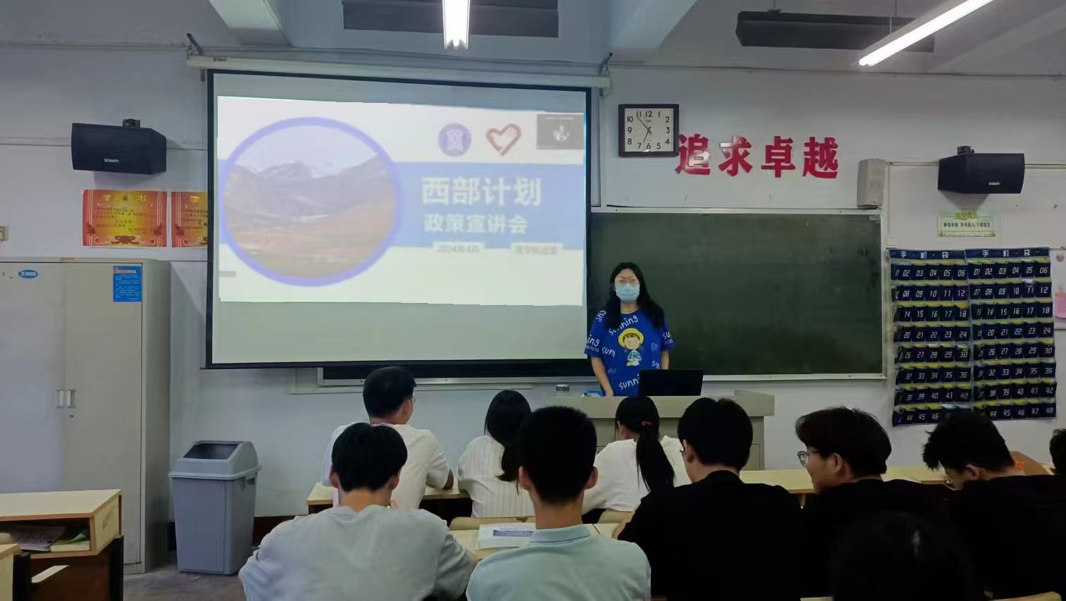 为进一步宣传大学生志愿服务西部计划项目,鼓励青年学生扎根基层、投身实践,激发同学们参与志愿服务的热情,引领更多青年加入西部计划志愿者队伍。4月18日,必赢官网在文科楼216教室举办西部计划政策宣讲会。会议采用线上+线下的形式开展,邀请18级只茂蕊、19级赵先超两位优秀西部志愿者代表进行分享。学院专职辅导员田甜主持会议,学院学生会就业工作部部长韩烨担任宣讲人,20、21级学生代表参加。