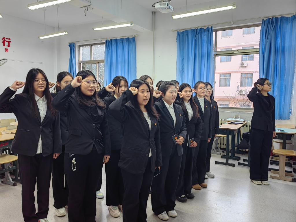 在今日庄严的入团仪式上,大家共同见证了新团员们成长的重要时刻。首先,与会领导和老团员代表为新团员们颁发团员证和团徽,象征着他们正式成为共青团的一员。其次,新团员们在团组织负责人的带领下持立正姿势,面向团旗,右手握拳,举过右肩,跟随领誓人逐句领读入团誓词。宣誓过程中,每一位新团员都神情庄重,声音洪亮,他们用自己的誓言表达了对共青团组织的忠诚和对共青团事业的热爱。最后,全体新团员们奏唱中国共产主义青年团团歌。