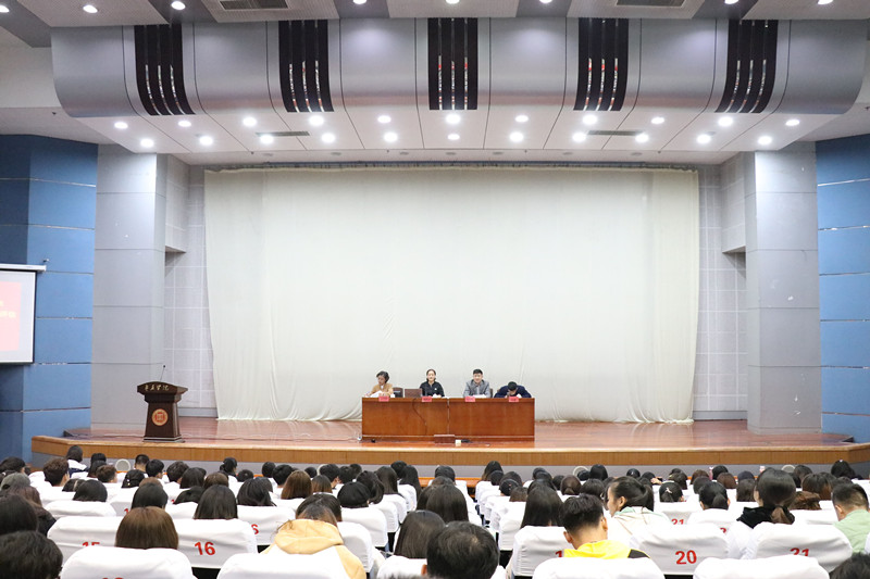 院党总支书记戴恩冰做了“迎接本科教学工作审核评估辅导报告”。介绍了学院的发展历程、专业设置、学生指导与服务、学风与学习效果等。她要求同学们思想上要高度重视评估工作,树立“我为评估添风采,我为评估做贡献”的意识,认真学习评建知识,做好学生分内之事,上好每一堂课,做一个有修养、懂礼仪、守规范的新时代大学生,以最好的精神面貌迎接评估,展现枣院学子的优良风采。