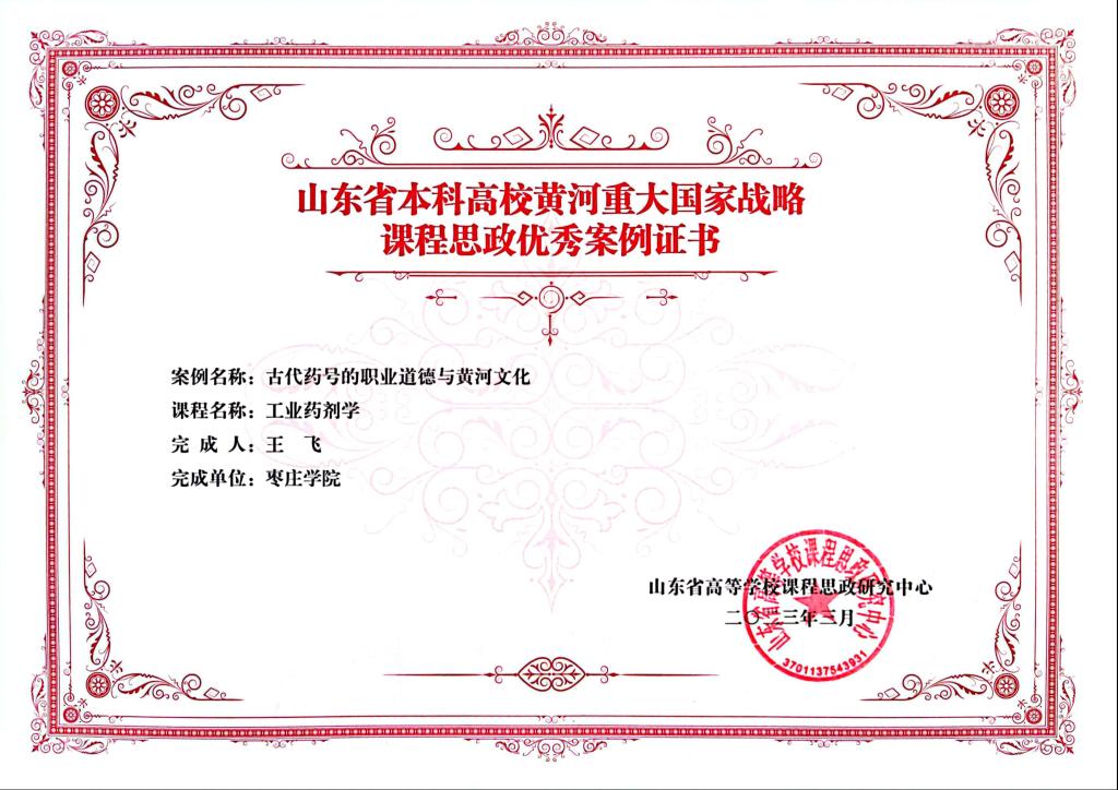 近日,山东省高等学校课程思政研究中心公布了山东省本科高校黄河重大国家战略课程思政优秀案例名单,必赢242net官网《工业药剂学》教学团队申报的《古代药号的职业道德与黄河文化》名列其中。