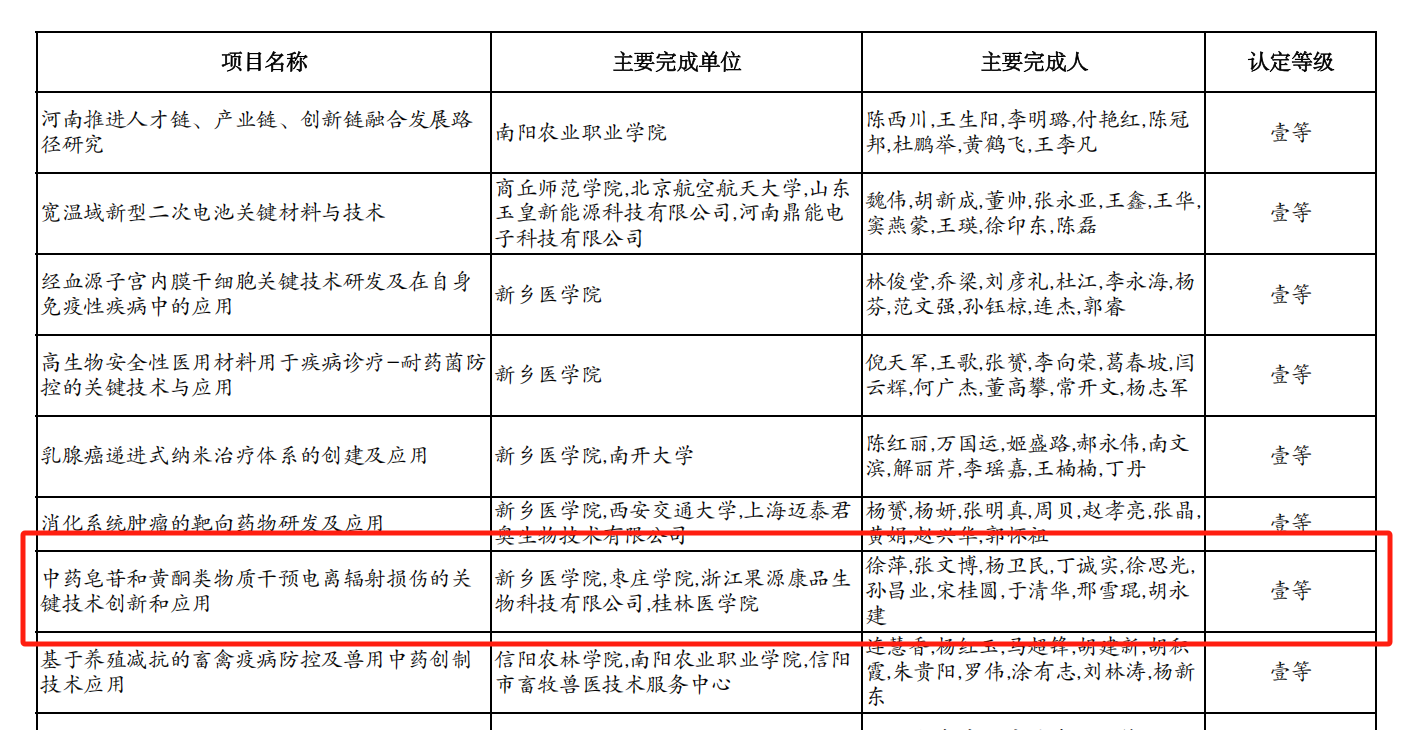 近日,河南省教育厅2025年度科技成果奖评奖揭晓。根据《河南省教育厅办公室关于开展2025年度科技成果评定暨河南省科学技术奖提名工作的通知》有关要求,经申请并组织专家评审,必赢官网必赢242net官网特聘高层次专家人才徐萍教授与新乡医学院联合申报的“中药皂苷和黄酮类物质干预电离辐射损伤的关键技术创新和应用”项目荣获一等奖,徐萍为该项目负责人、第一获奖人。
