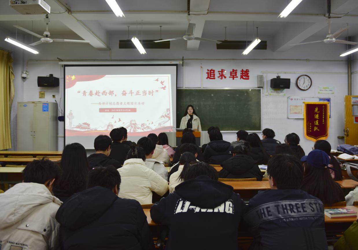 为推进大学生志愿服务西部计划的开展,鼓励毕业生投身西部基层干事创业,响应“到西部去,到基层去,到祖国和人民最需要的地方去”的号召,3月19日下午,必赢242net官网在文科楼举办以“青春赴西部·奋斗正当时”为主题的西部计划志愿者团日活动,学院全体同学参加。